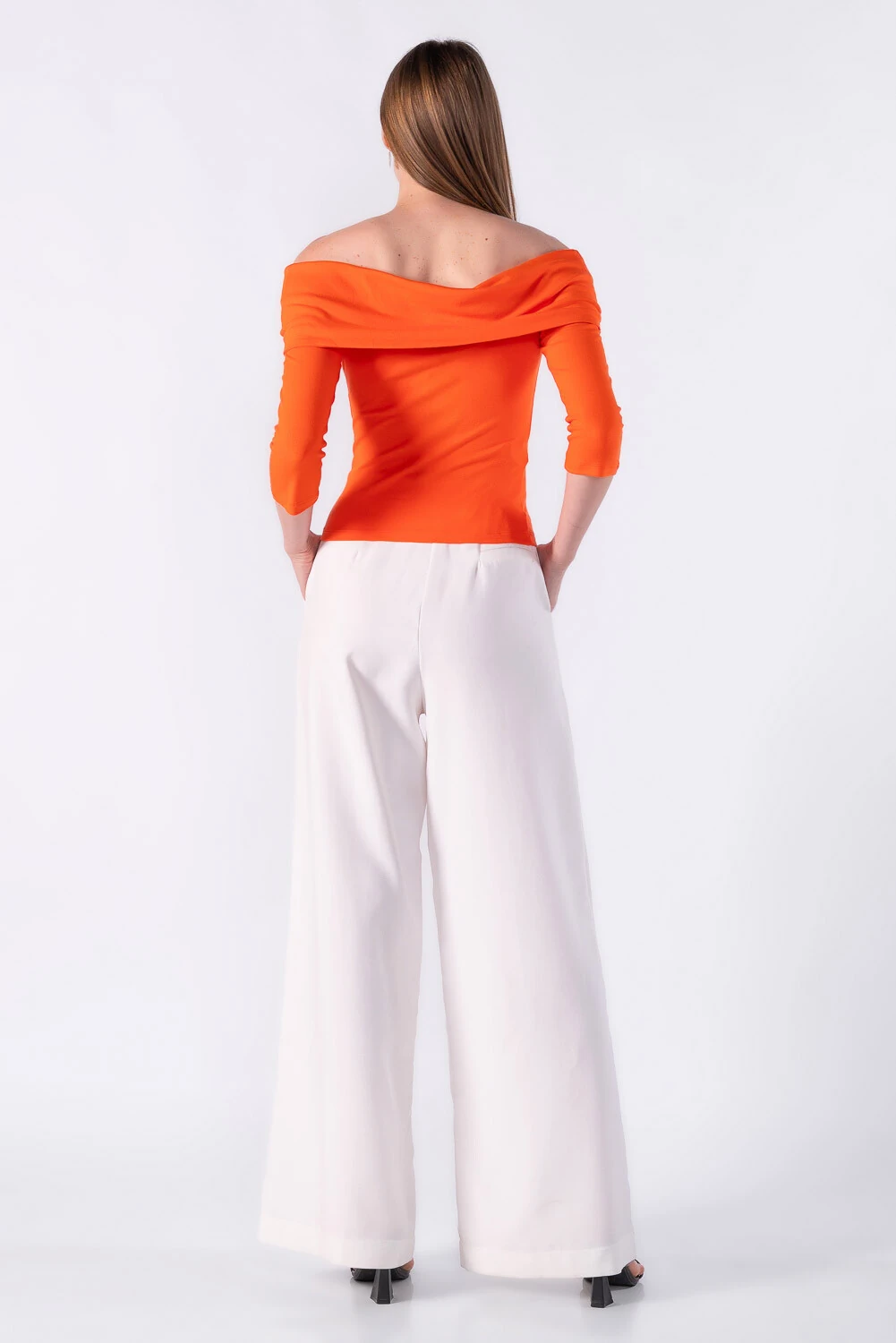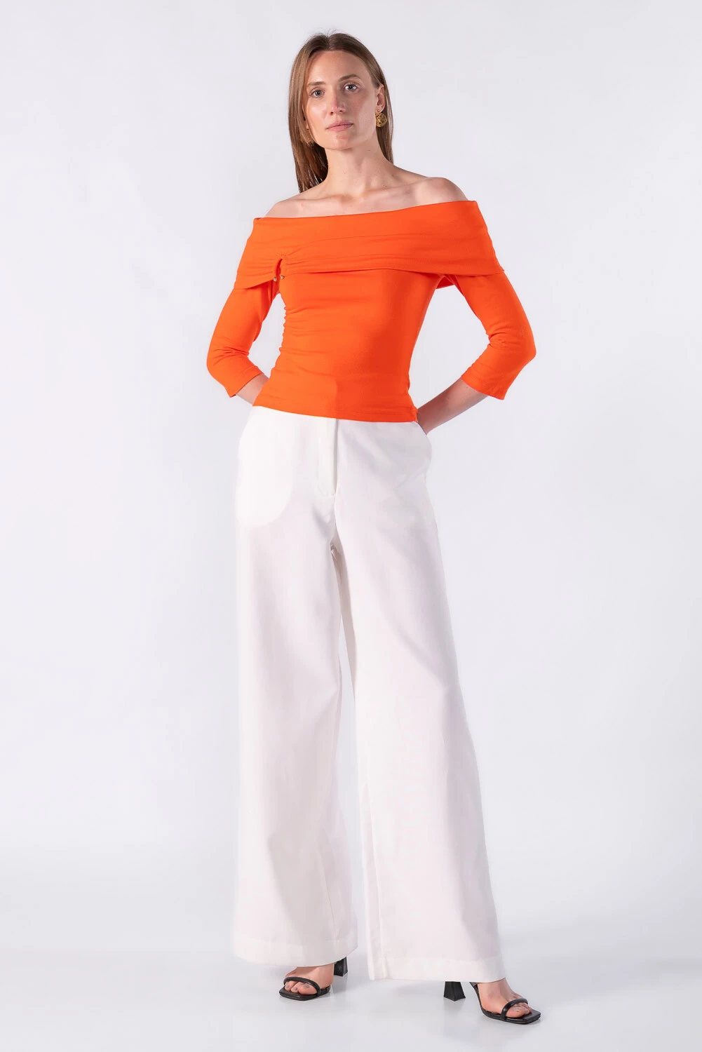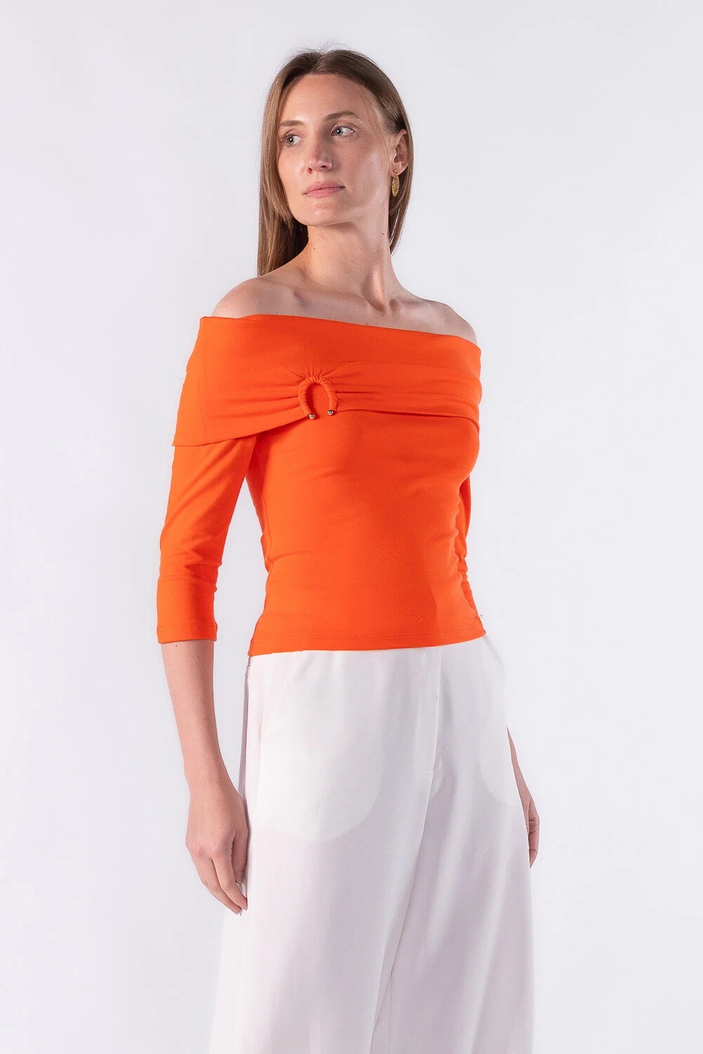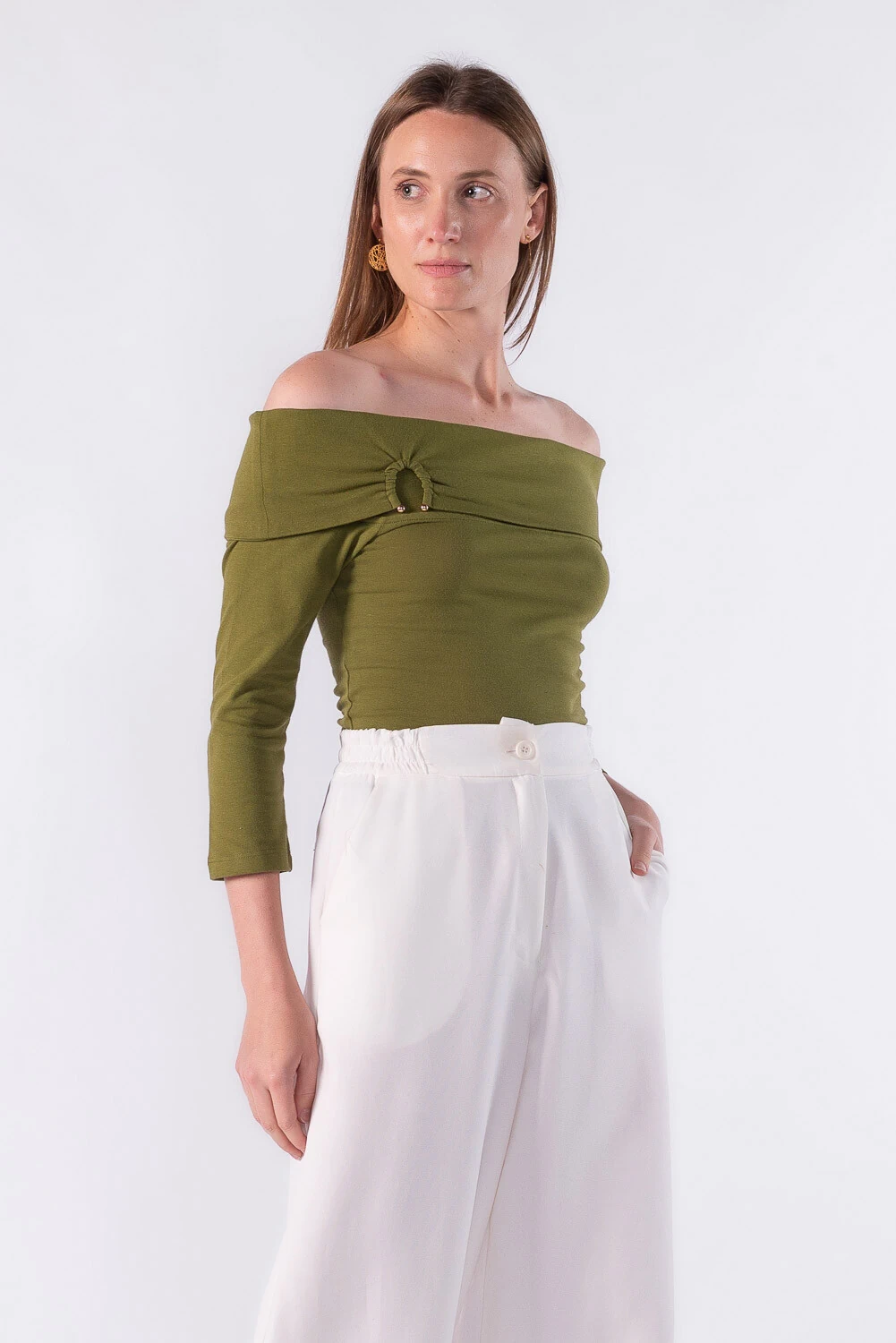 Blusa ombro a ombro manga 3/4 com detalhe metalizado