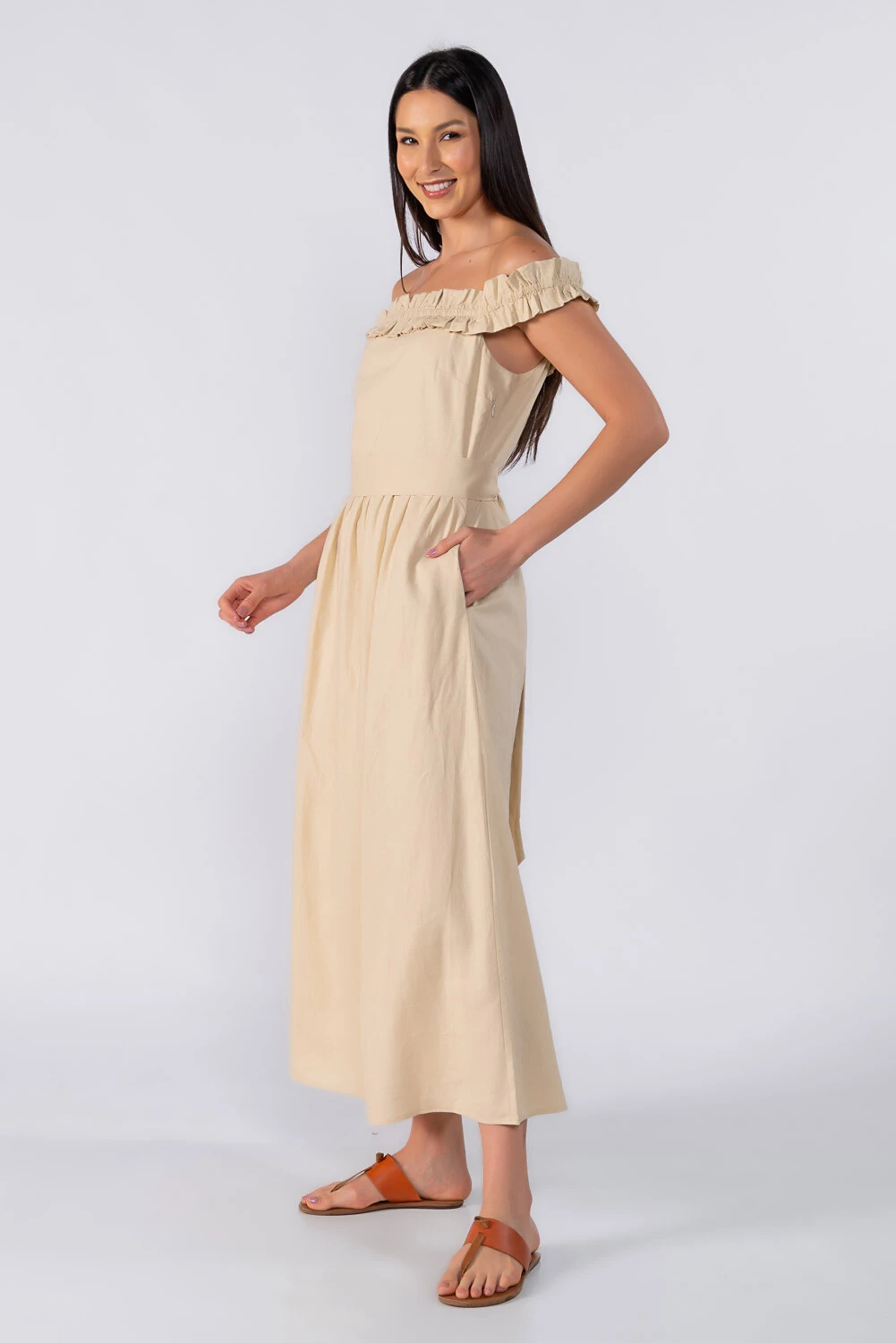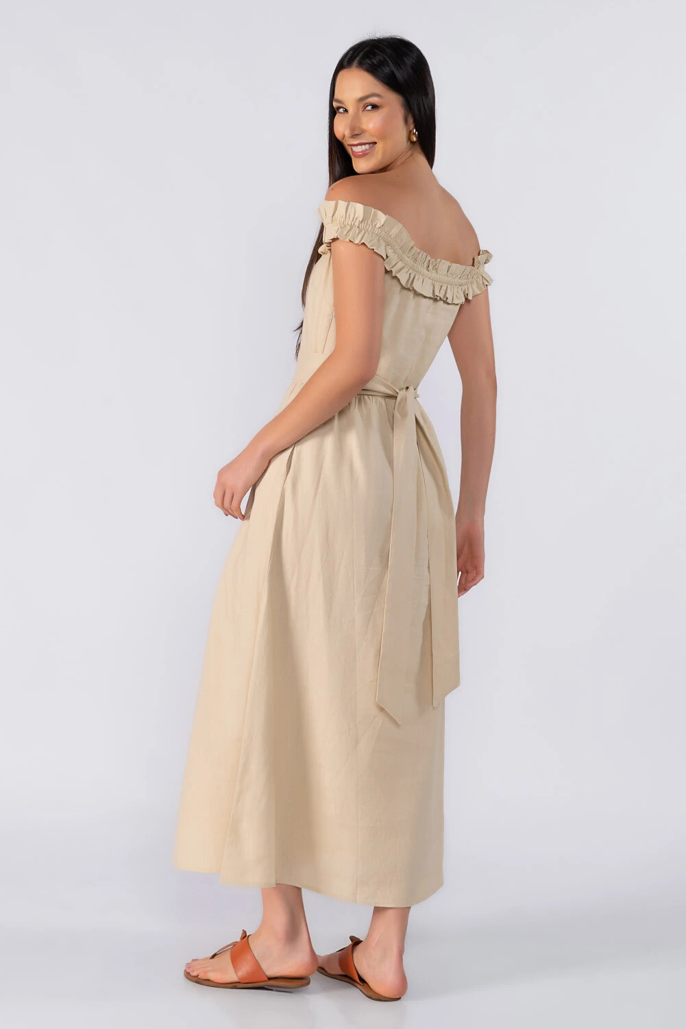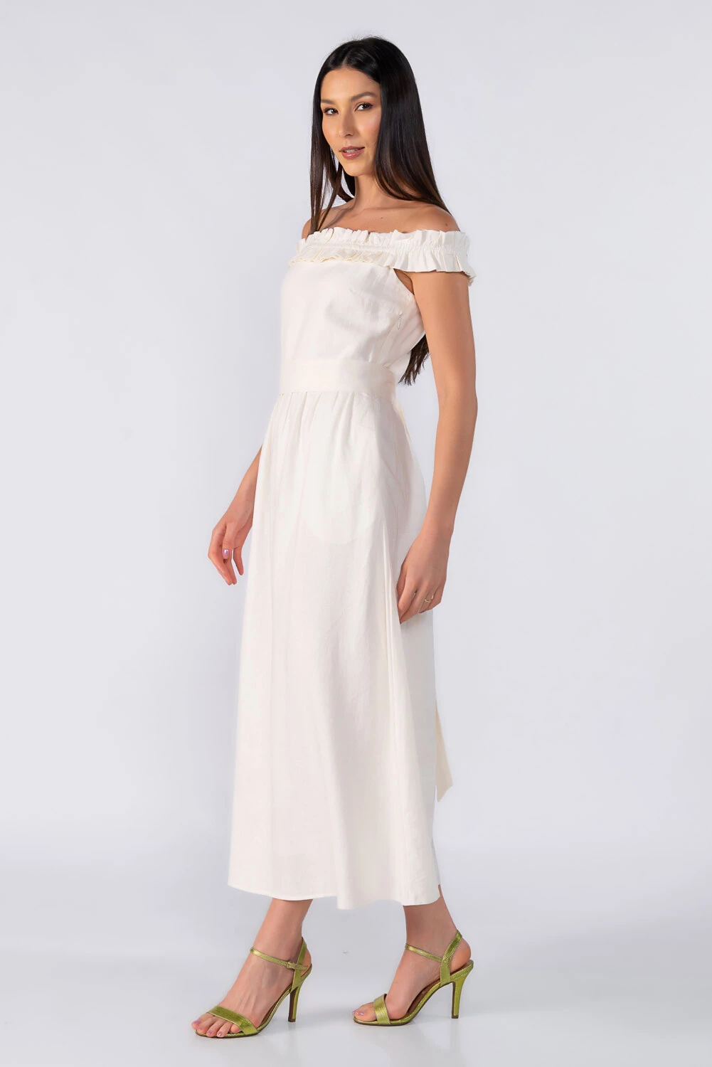 Vestido midi ombro a ombro