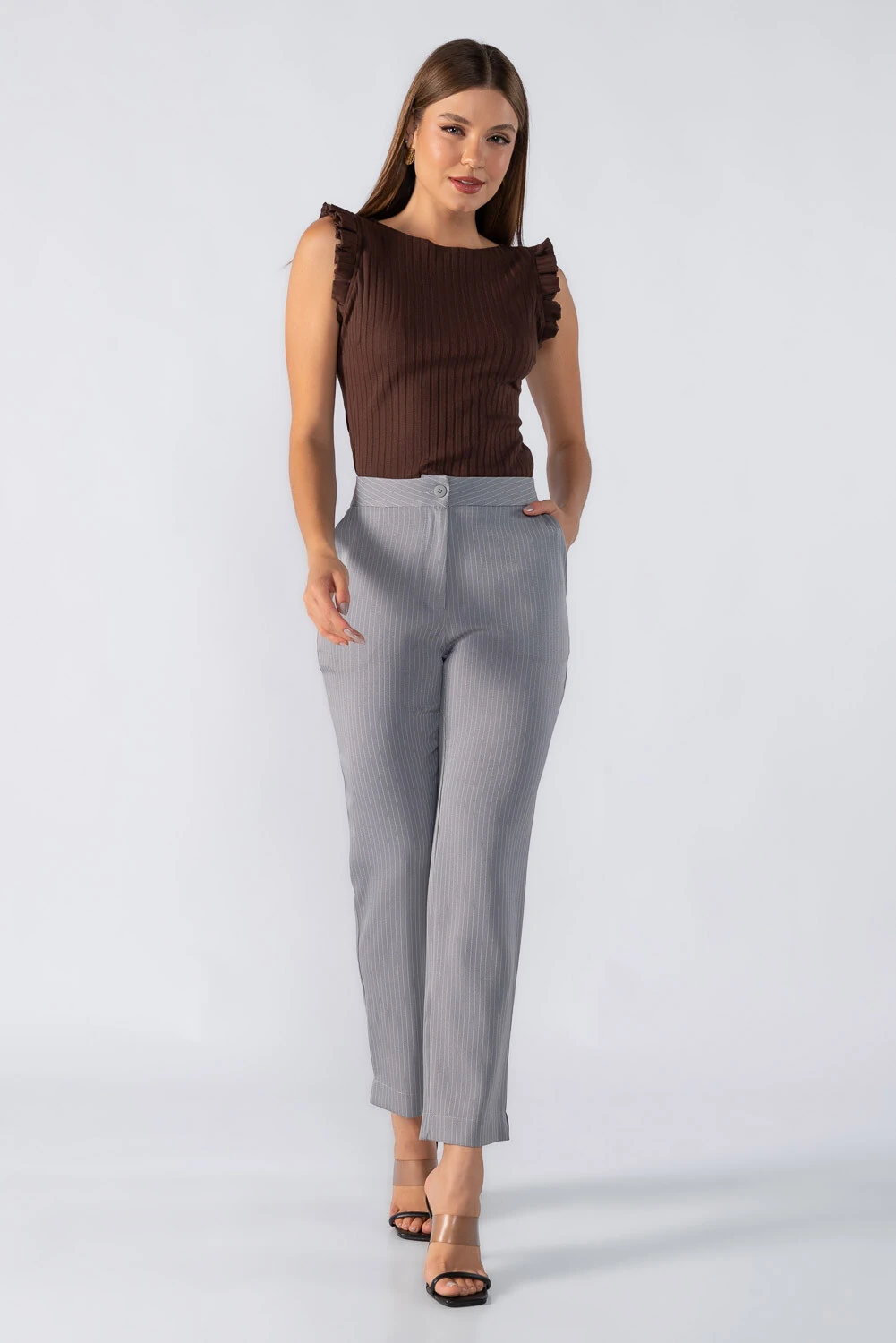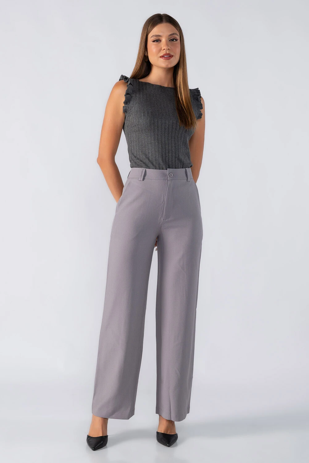 Dica: Usar com calça pantalona e scarpin