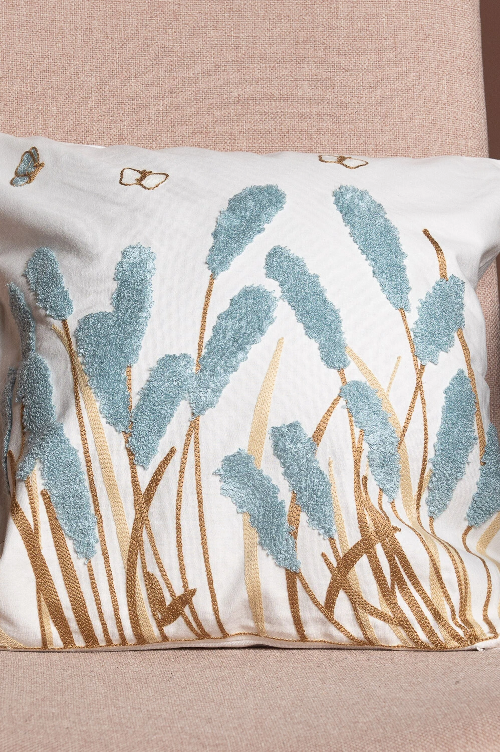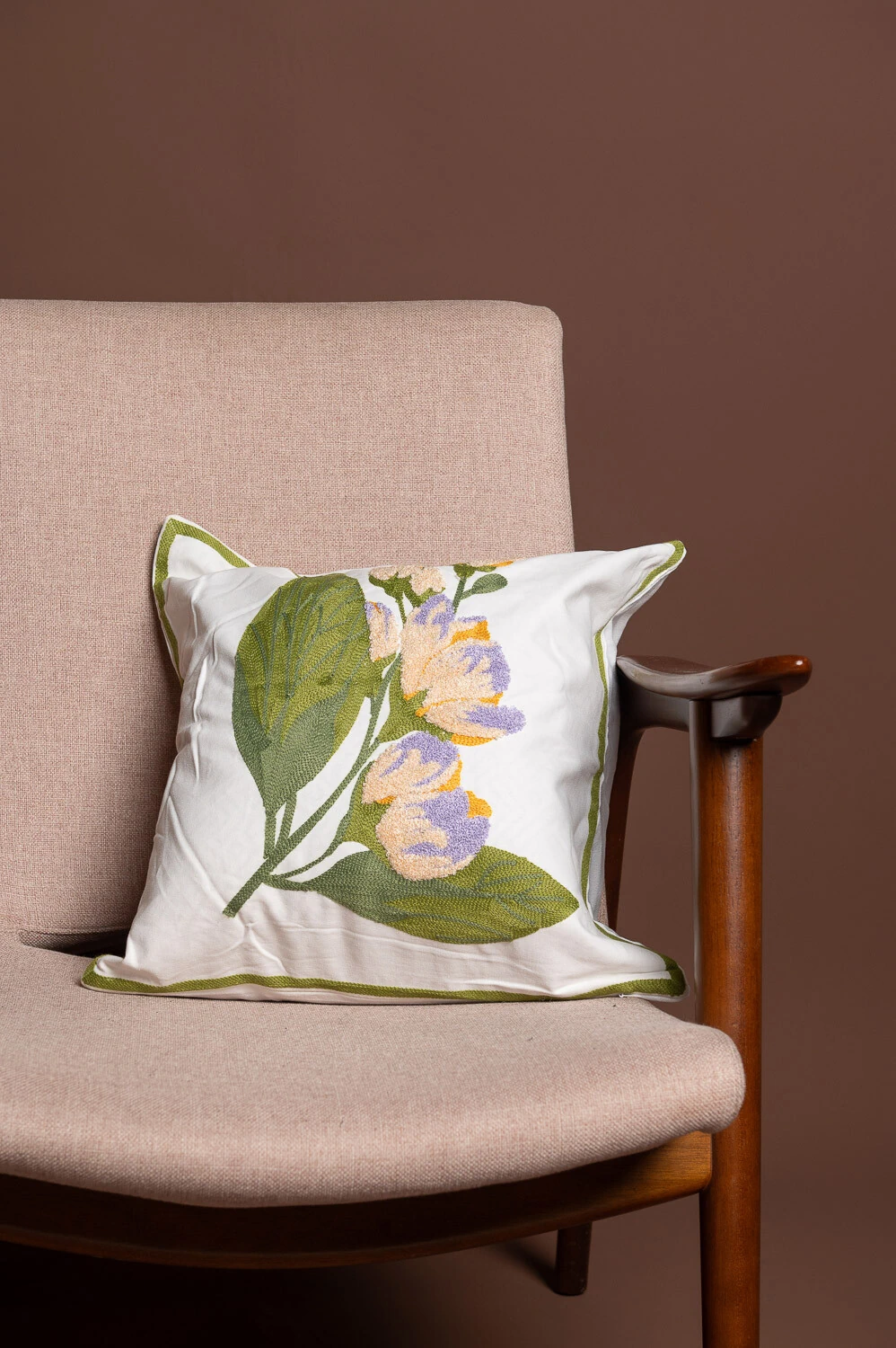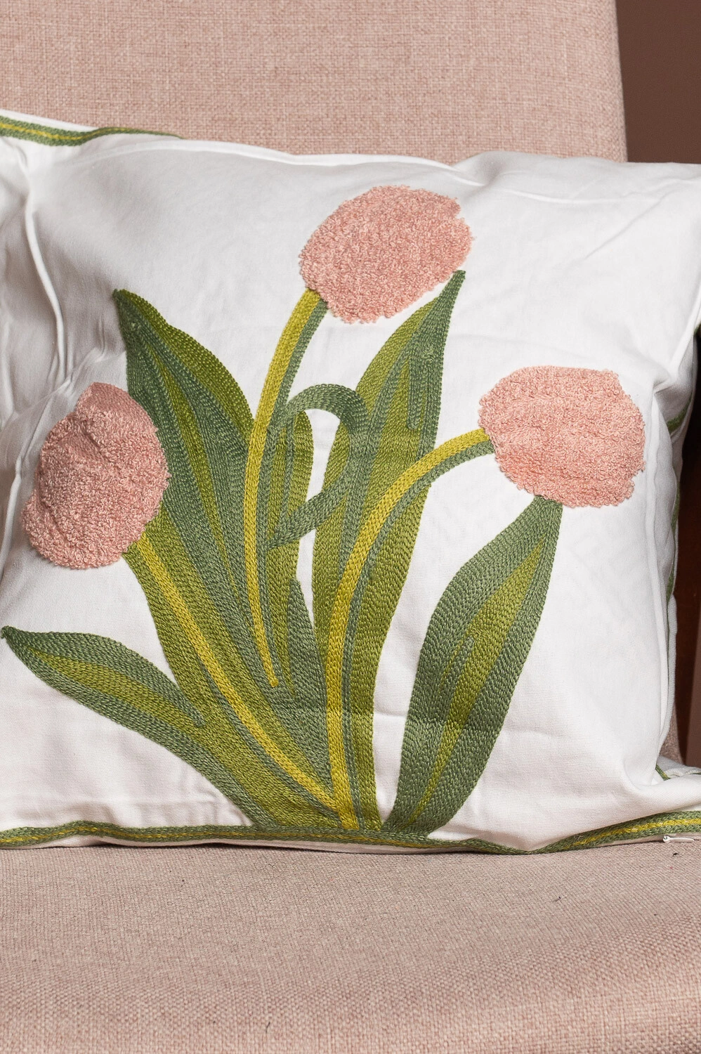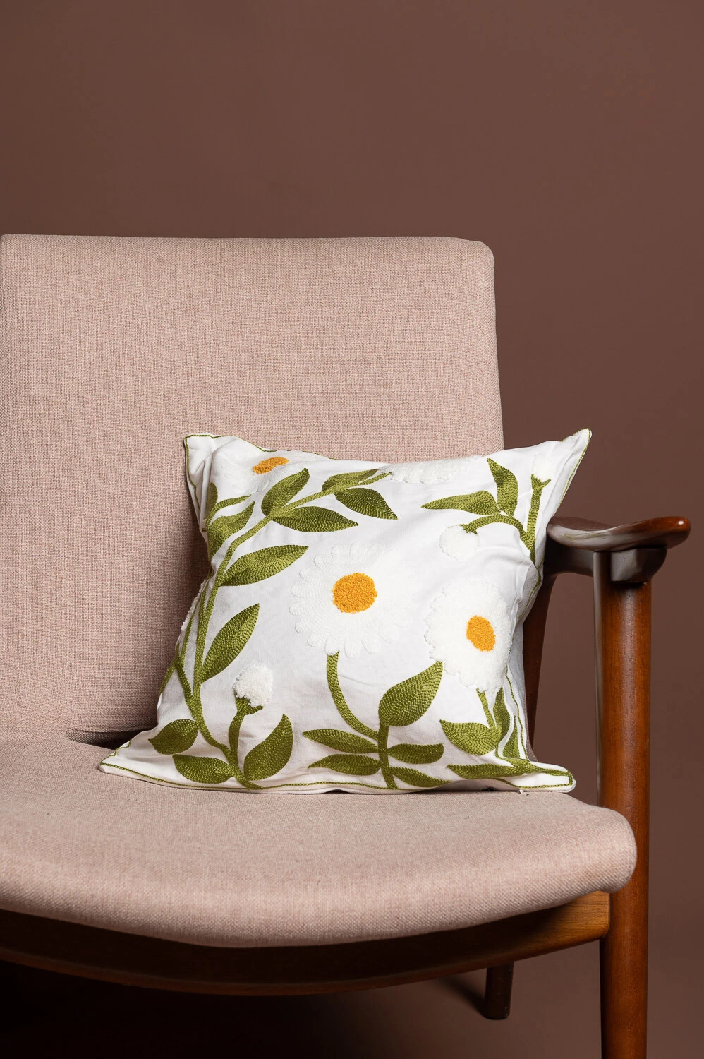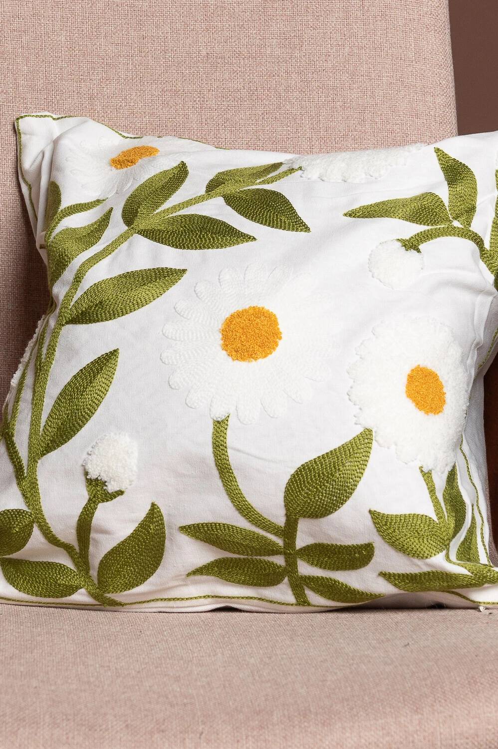 Capa de almofada 45x45cm em 100% poliéster, com flores bordadas. Ideal para trazer charme e leveza ao ambiente.