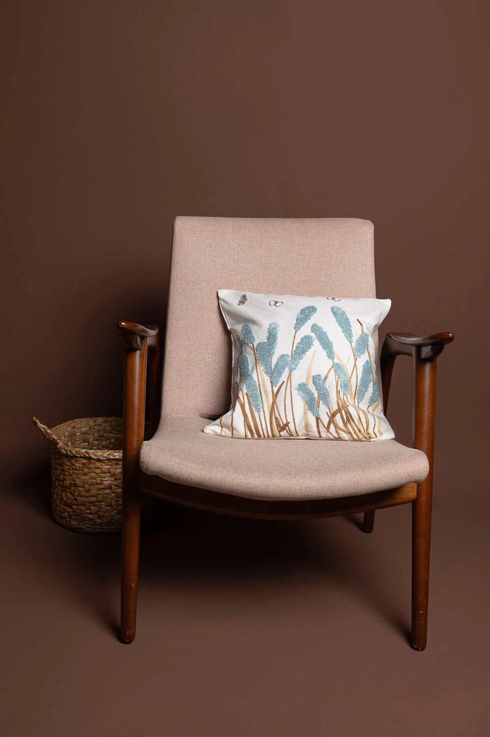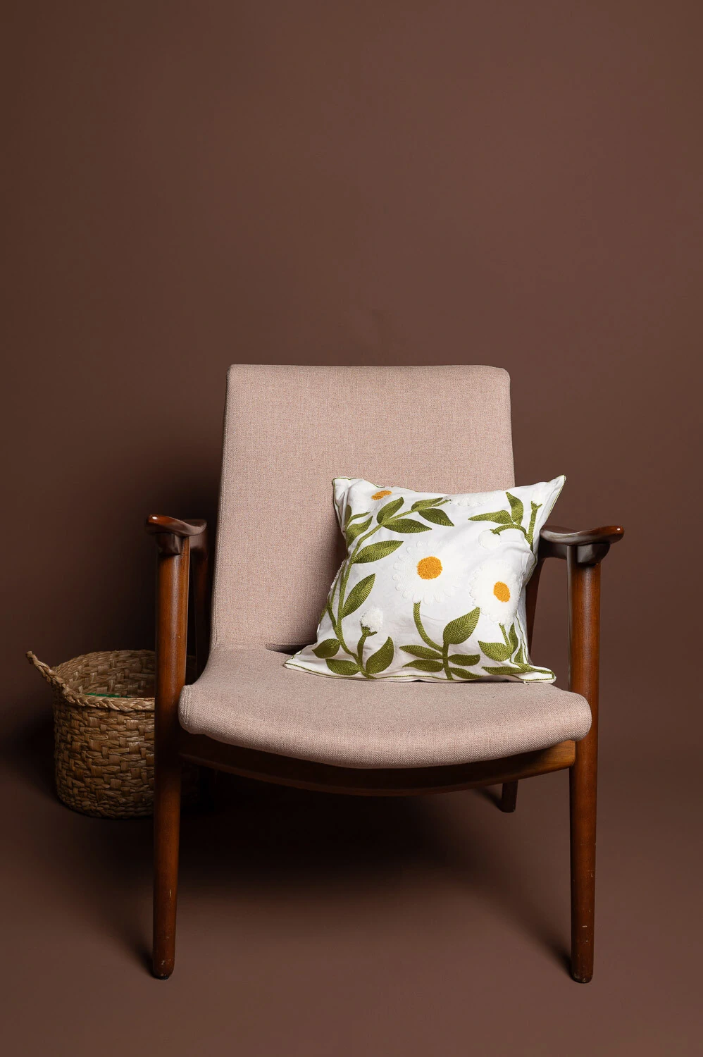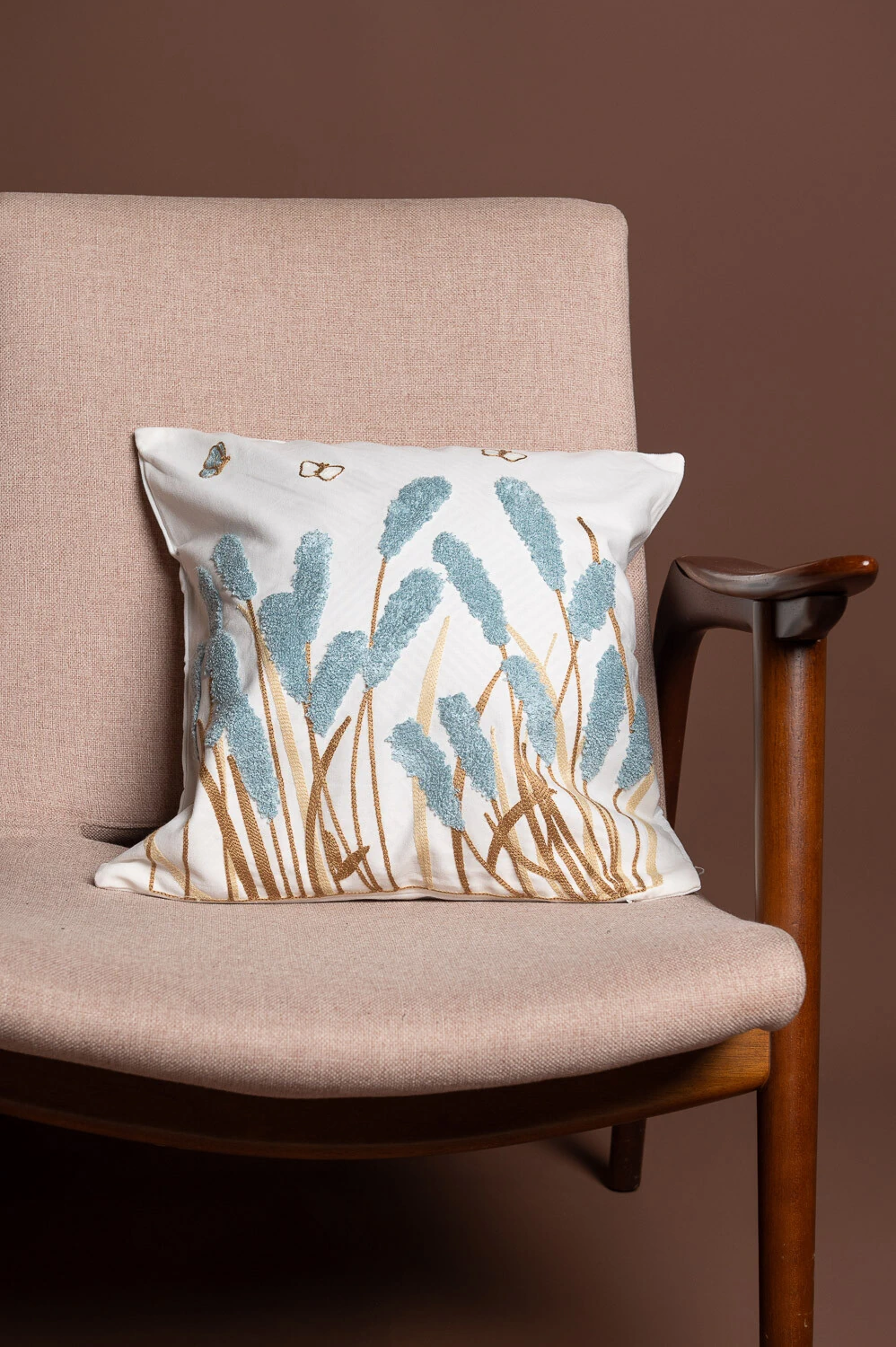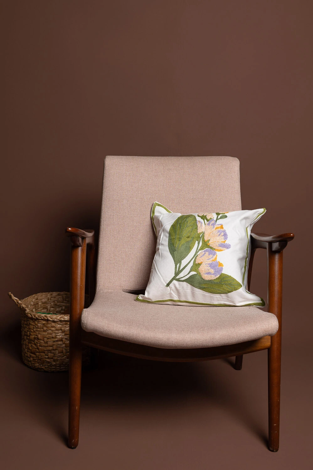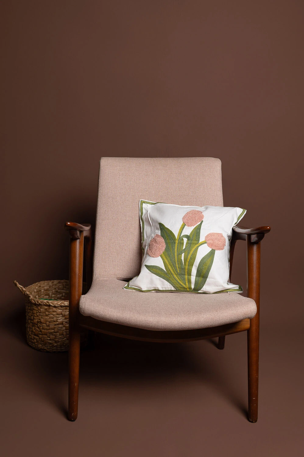 Capa de almofada 45x45cm em 100% poliéster, com flores bordadas. Ideal para trazer charme e leveza ao ambiente.