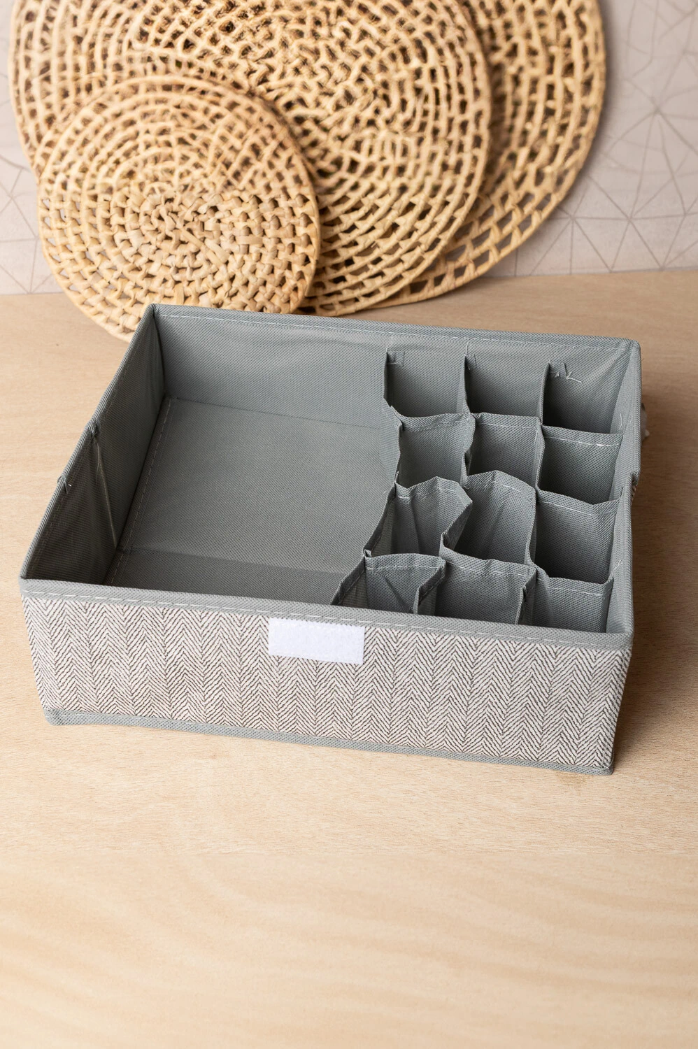 Caixa organizadora fechada com 13 divisórias, ideal para manter tudo separado e protegido. Funcional e perfeita para otimizar a organização do ambiente.
