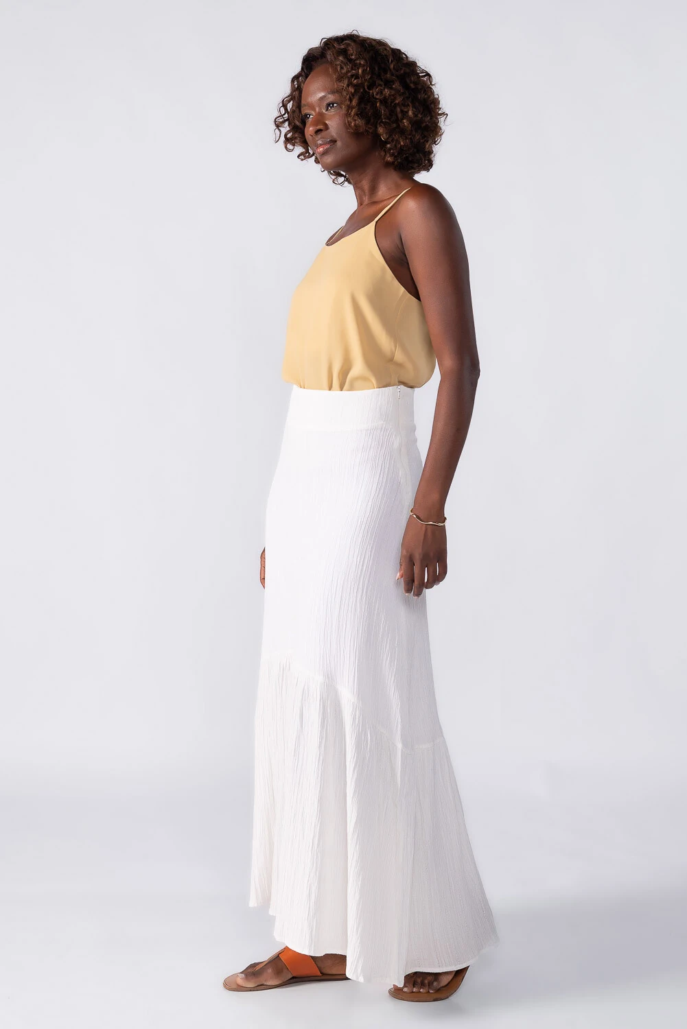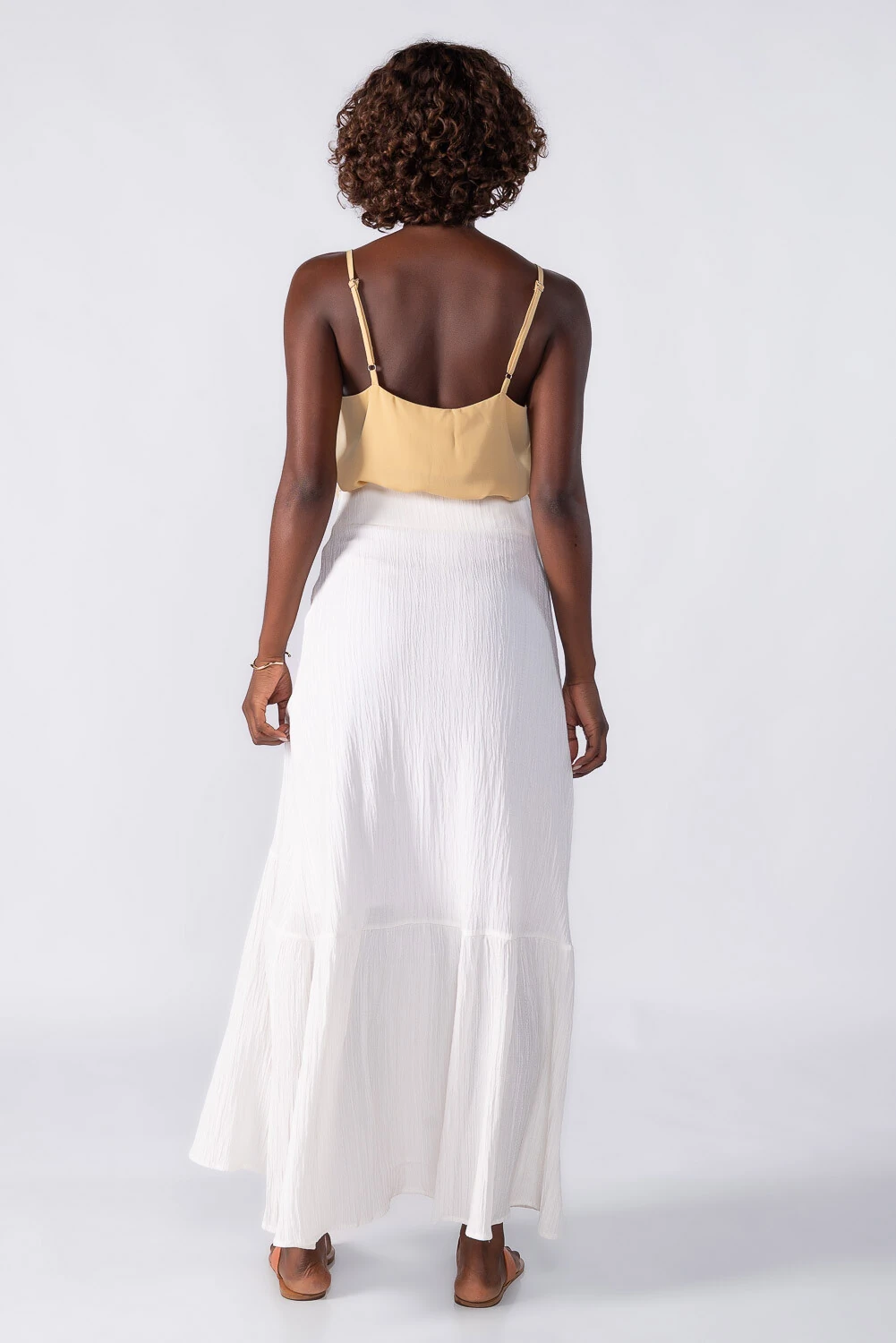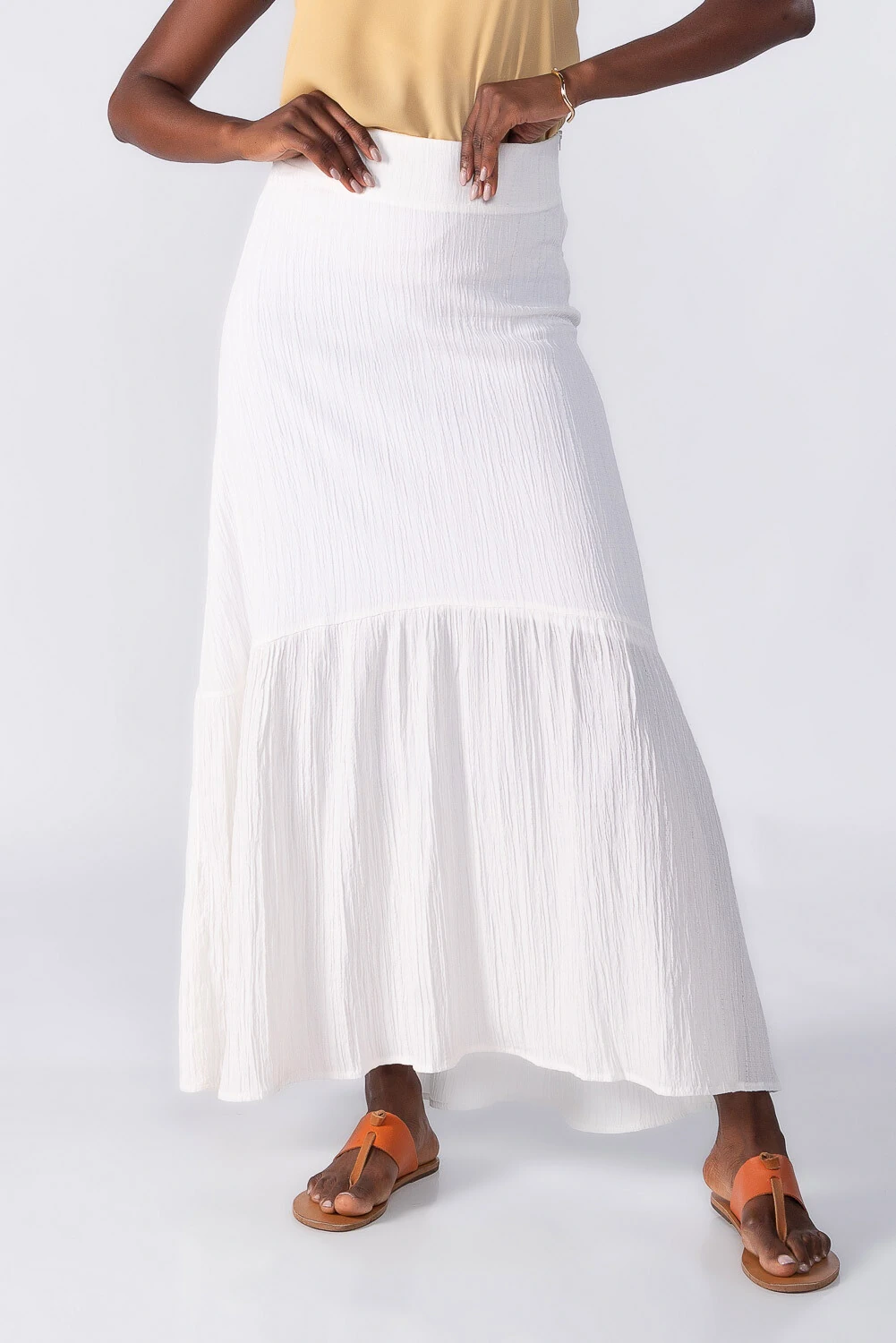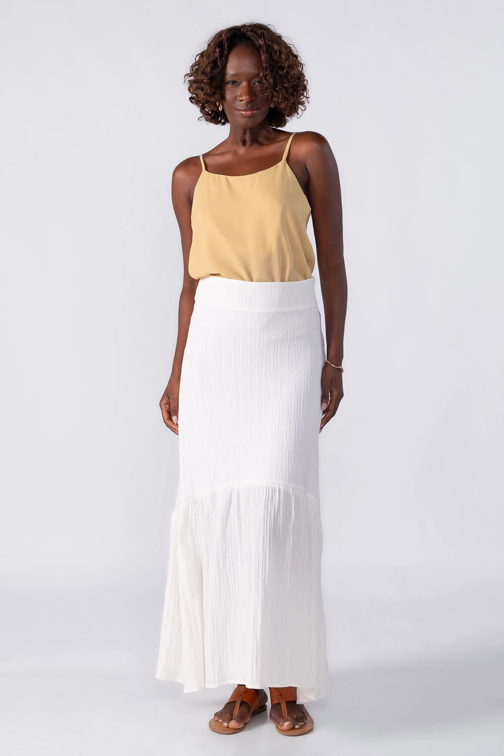 Saia longa evasê com textura no tecido