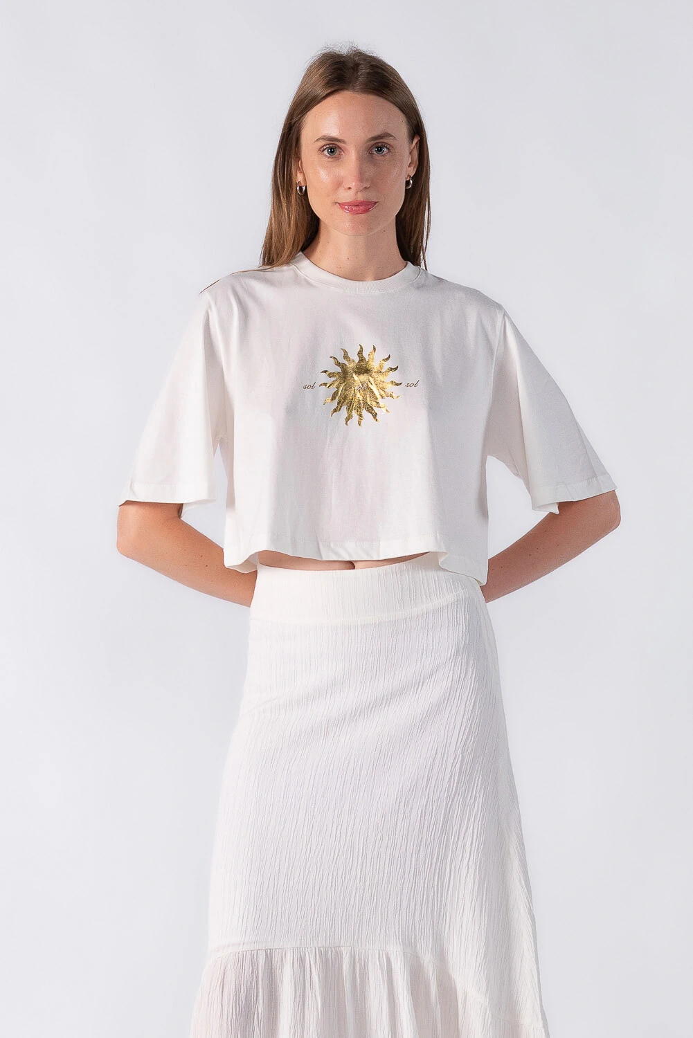 Cropped básico com estampa Sol