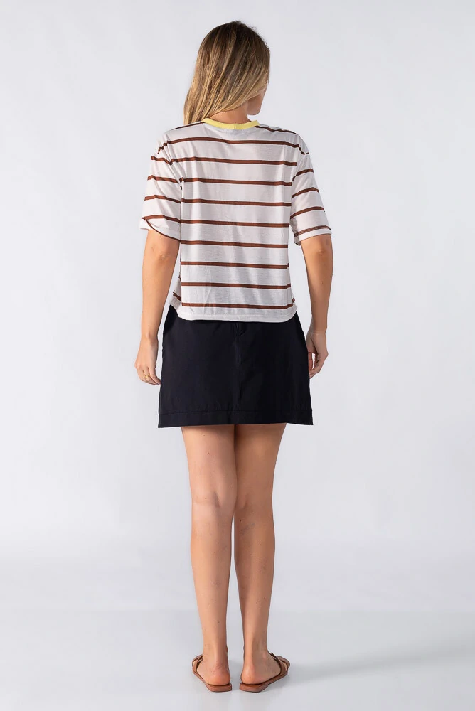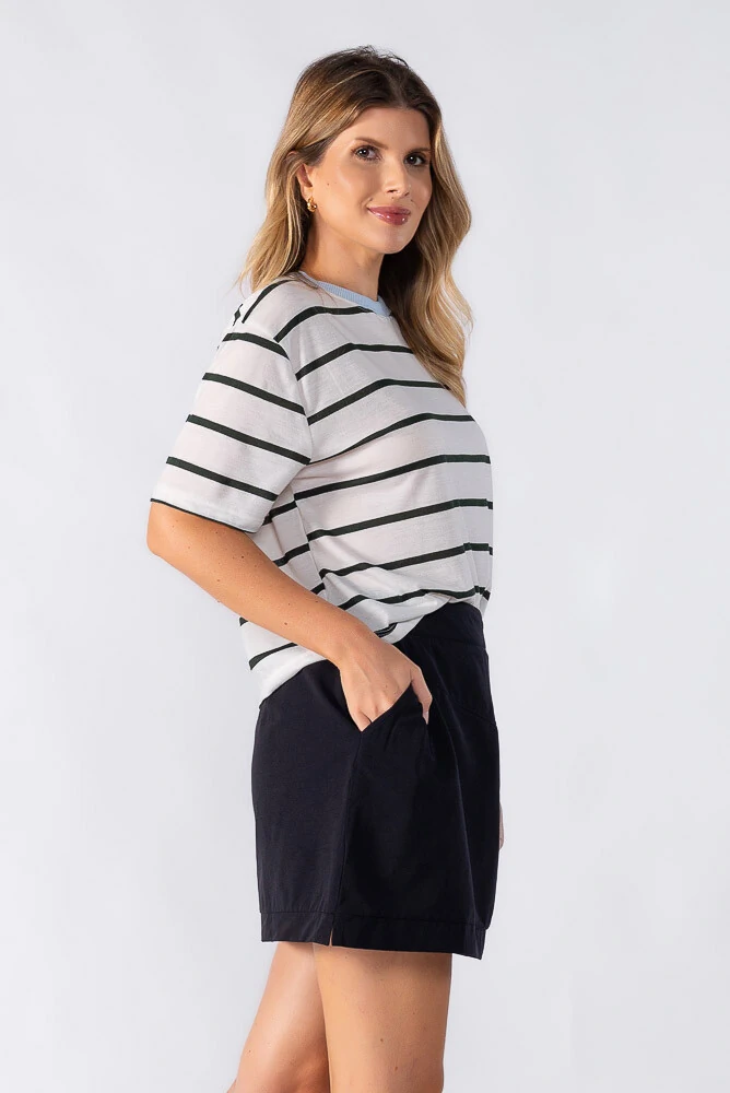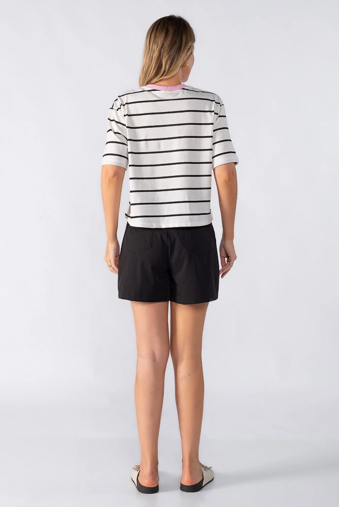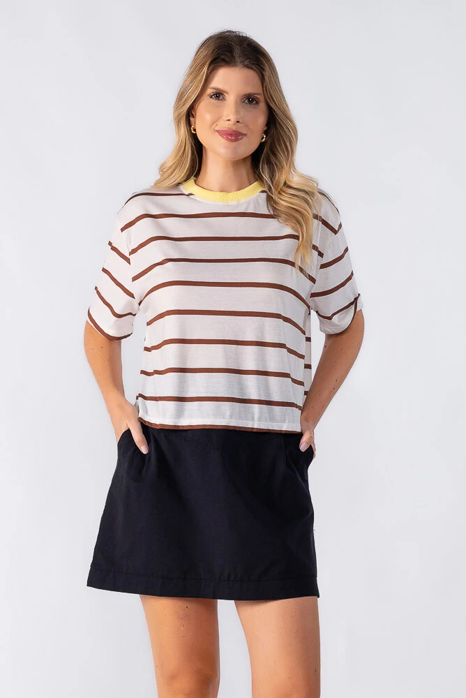 Blusa cropped bicolor listrado com detalhe gola