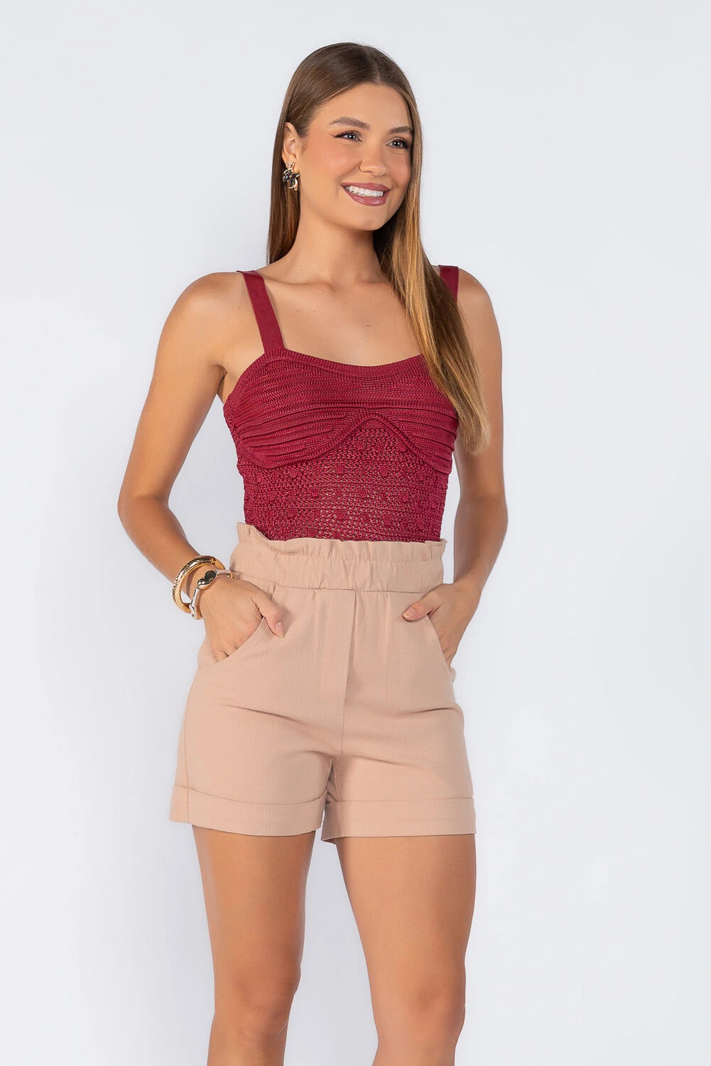 Cropped tricot com detalhes no busto