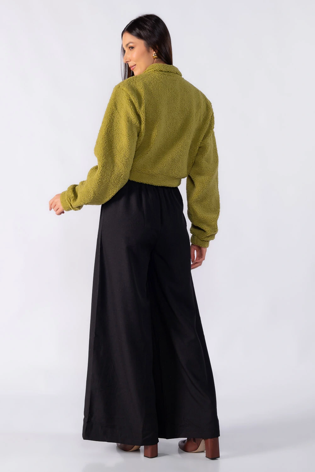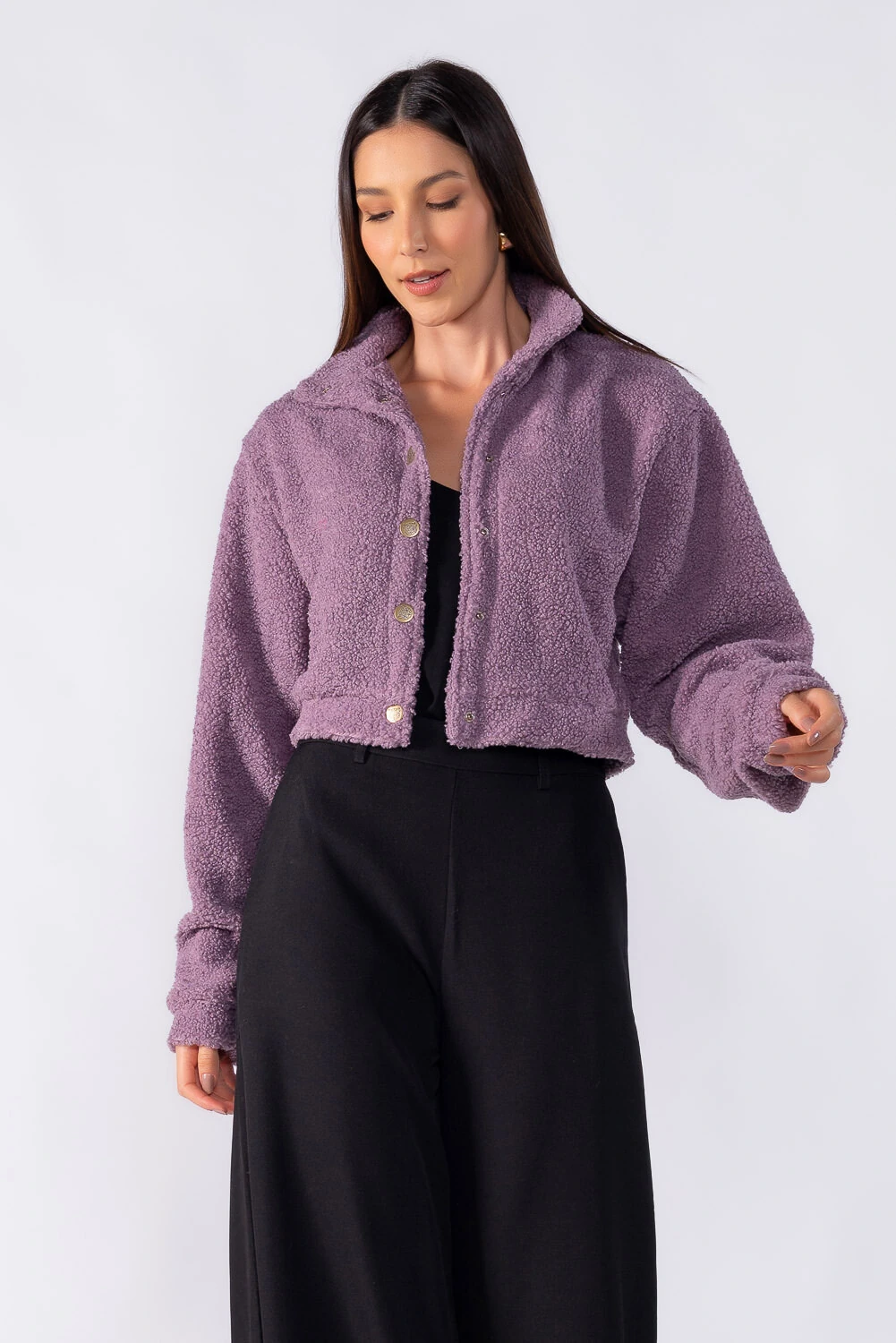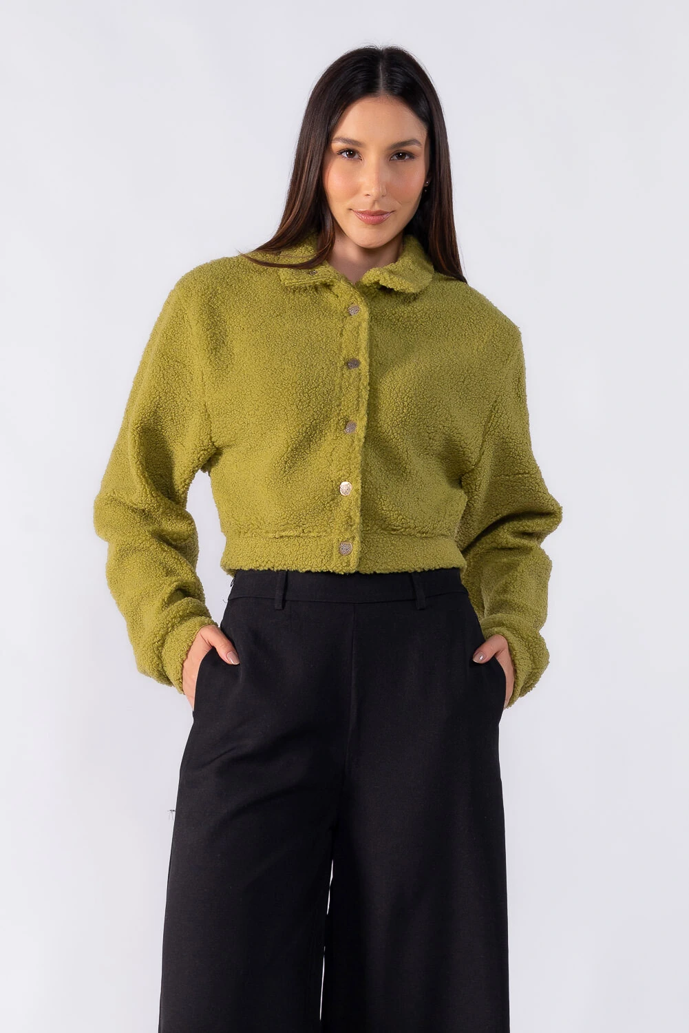 Casaco cropped com botões trabalhados, trazendo um toque sofisticado e contemporâneo à peça. Perfeito para composições elegantes e atuais.